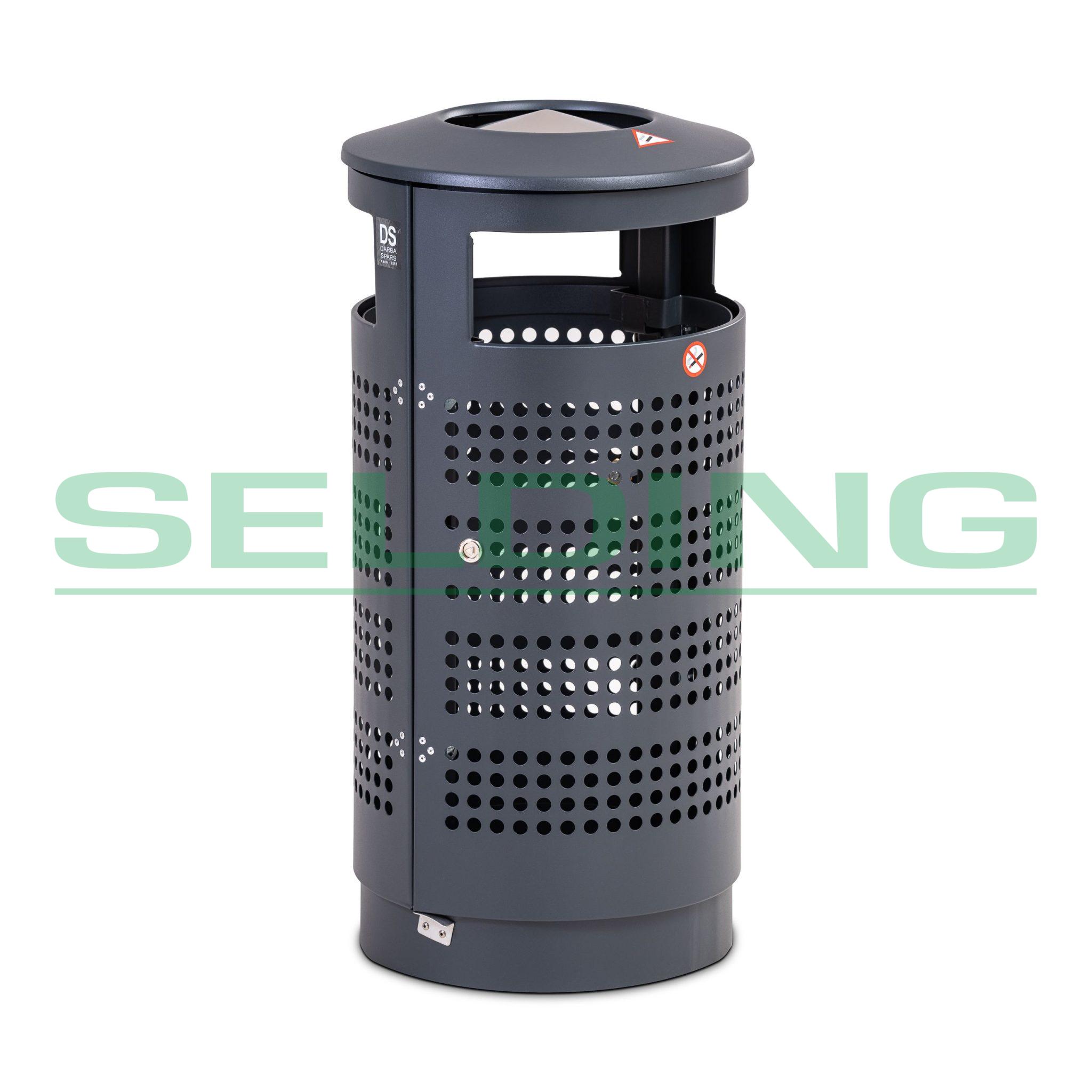 70L atkritumu tvertne lietojama dažāda veida atkritumiem, visnoslogotākajās pilsētas vietās. Izgatavota no cinkota tērauda, ar divpusējām, slēdzamām durvīm. Vieta izsmēķu nodzēšanai izgatavota no nerūsējoša tērauda un novietota konteinera augšpusē. Izstrādājuma virsma pārklāta ar epoksīdu pulverkrāsu, kas nodrošina 5 gadu pretkorozijas garantiju. Plastikāta maisu ērta nomaiņa konteinera iekšpusē. Stiprināms pie pamatnes ar skrūvi. Izmērs 420x870mm, 1.5mm. Krāsas pēc pasūtījuma.