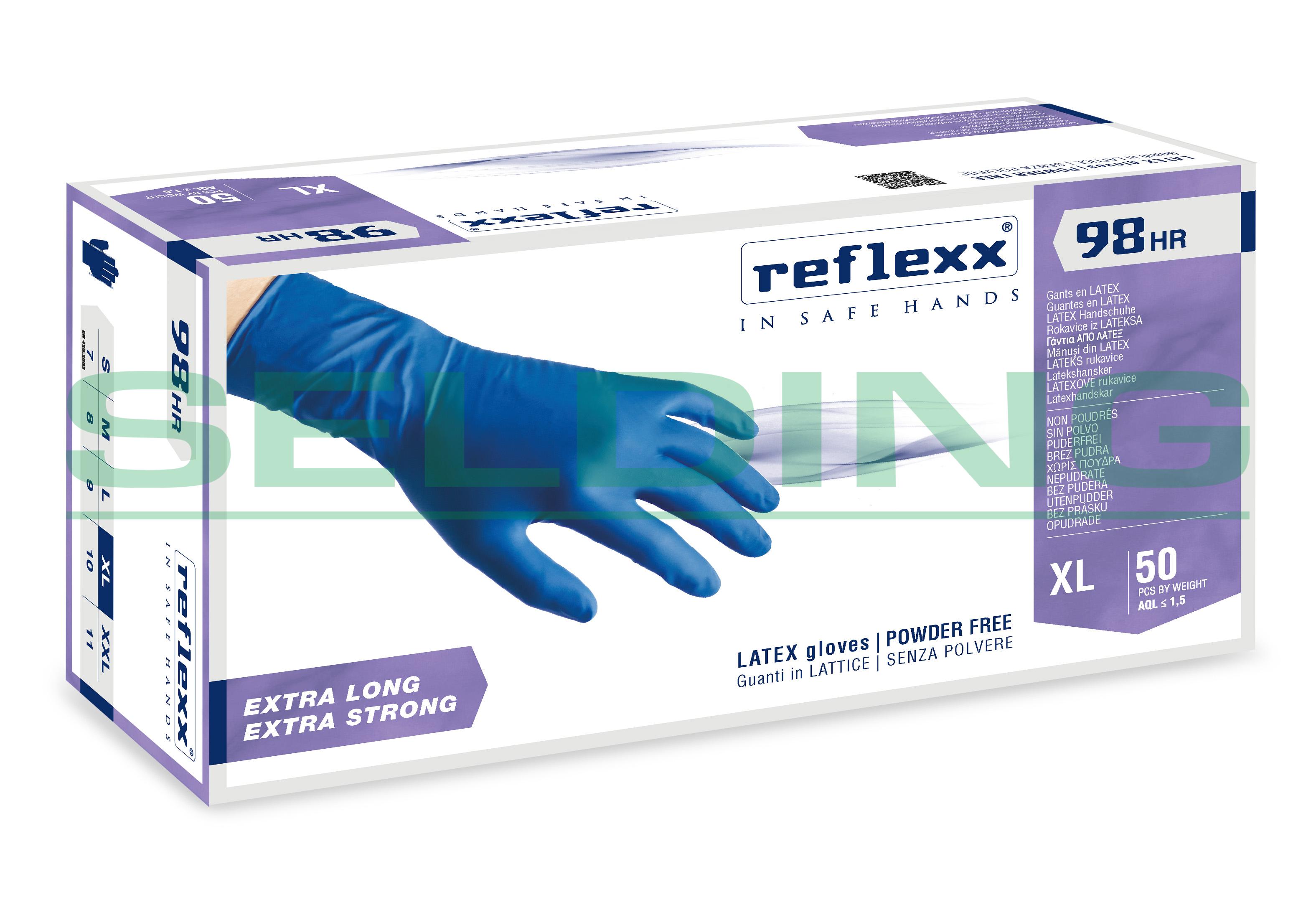 Cimdi lateksa nepūderēti ekstra izturīgi ar garo manžeti REFLEXX 98HR, 10-XL, zili, 50gab (10)