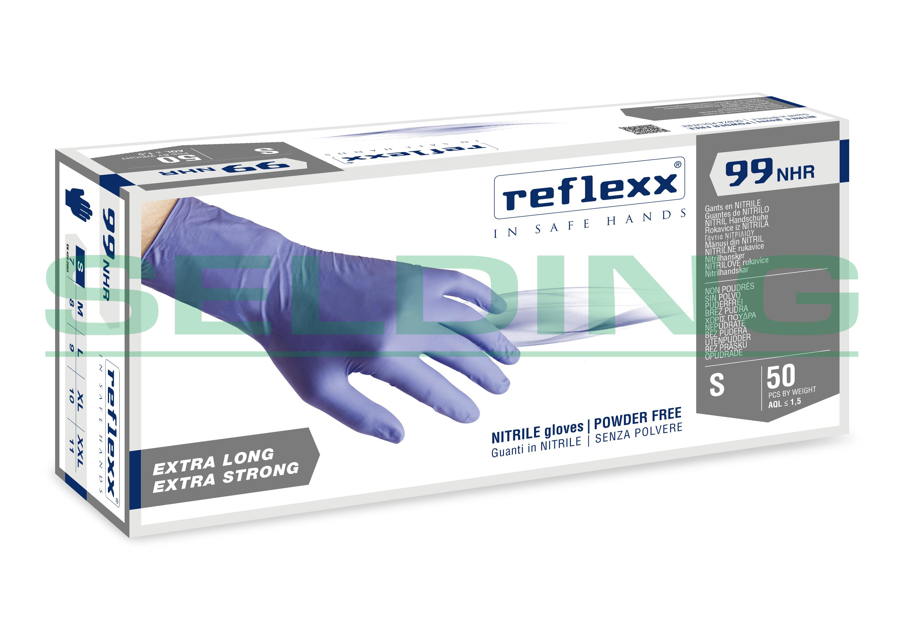Cimdi nitrila nepūderēti īpaši izturīgi ar garo manžeti REFLEXX 99NHR, 7-S, violeti, 50gab (10)
