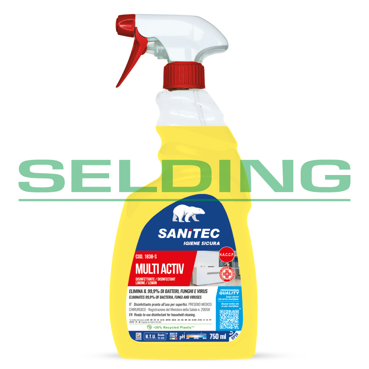 Iepakojums: 750ml, pH 11. Iznīcina 99,9% baktērijas, sēnītes un vīrusus. Universāls dezinficējošs attaukošanas līdzeklis uz spirta bāzes, gatavs lietošanai ar citonu aromātu. Antibakteriālā aktīvā viela nodrošina grampozitīvu un gramnegatīvu baktēriju, sēnīšu, pelējuma, vīrusu (gan iekapsulētu, gan neiekapsulētu) un nepatīkamu smaku noņemšanu no virsmām. Piemērots visu ūdens izturīgu virsmu un virsmu kas nonāk saskarē ar pārtiku dezinficēšanai. Izmantošanas veids: veicot ikdienas tīrīšanu, uzklājiet tieši uz apstrādājamās virsmas un pēc tam noslaukiet ar drānu vai papīru. Dezinficēšanai ļaujiet iedarboties vismaz 5 minūtes baktericīdai iedarbībai vai vismaz 15 minūtes fungicīdai un virucīdai iedarbībai. BIOCĪDS LV301222019/8745. Mikrobioloģiskās aktivitātes testi: EN1276 “Baktericīdā aktivitāte ar traucējošām vielām”, EN1650 “Fungicīdā aktivitāte ar traucējošām vielām”, EN13697 “Baktericīdās/fungicīdās aktivitātes virsmas tests”, EN14476 “Virucīdās aktivitātes tests suspensijā”. Iekļautās virsmaktīvās vielas ir bioloģiski noārdāmas atbilstoši kritērijiem, kas noteikti Eiropas Direktīvā 648/2004/EK un turpmākajos grozījumos. Atbilst H.A.C.C.P. (apstiprināts izmantošanai PĀRTIKAS jomā).