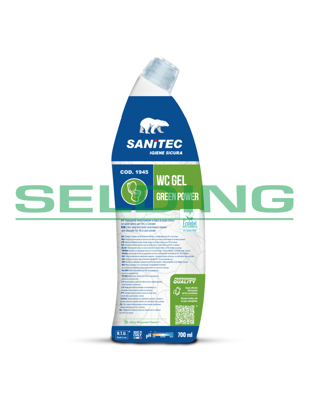 Iepakojums: 700ml, pH 2,2. Gatavs lietošanai. Želejveidīgs WC tīrīšanas līdzeklis ar augu izcelsmes, viegli, bioloģiski noārdāmām virsmaktīvām vielām. Viegli noņem netīrumus un kaļķakmeni, pat grūti aizsniedzamās vietās. Pietiek ar nelielu līdzekļa daudzumu – samazina gan izmaksas, gan ietekmi uz vidi.