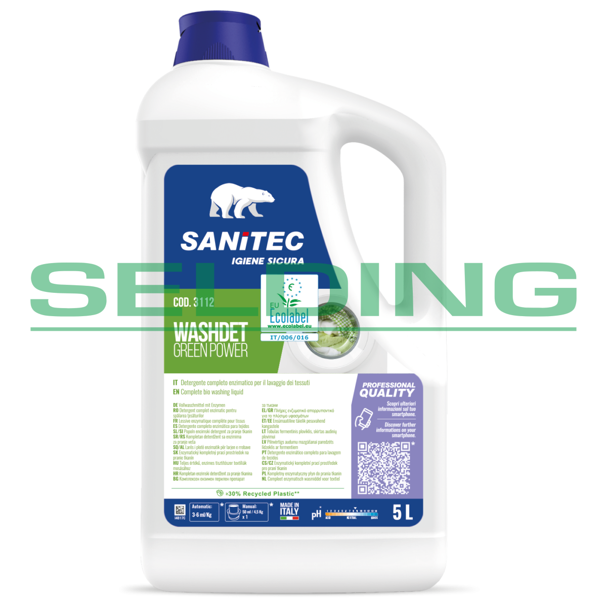 Ekoloģiskais veļas mazgāšanas līdzeklis Sanitec WASHDET Green Power, 5L (2)