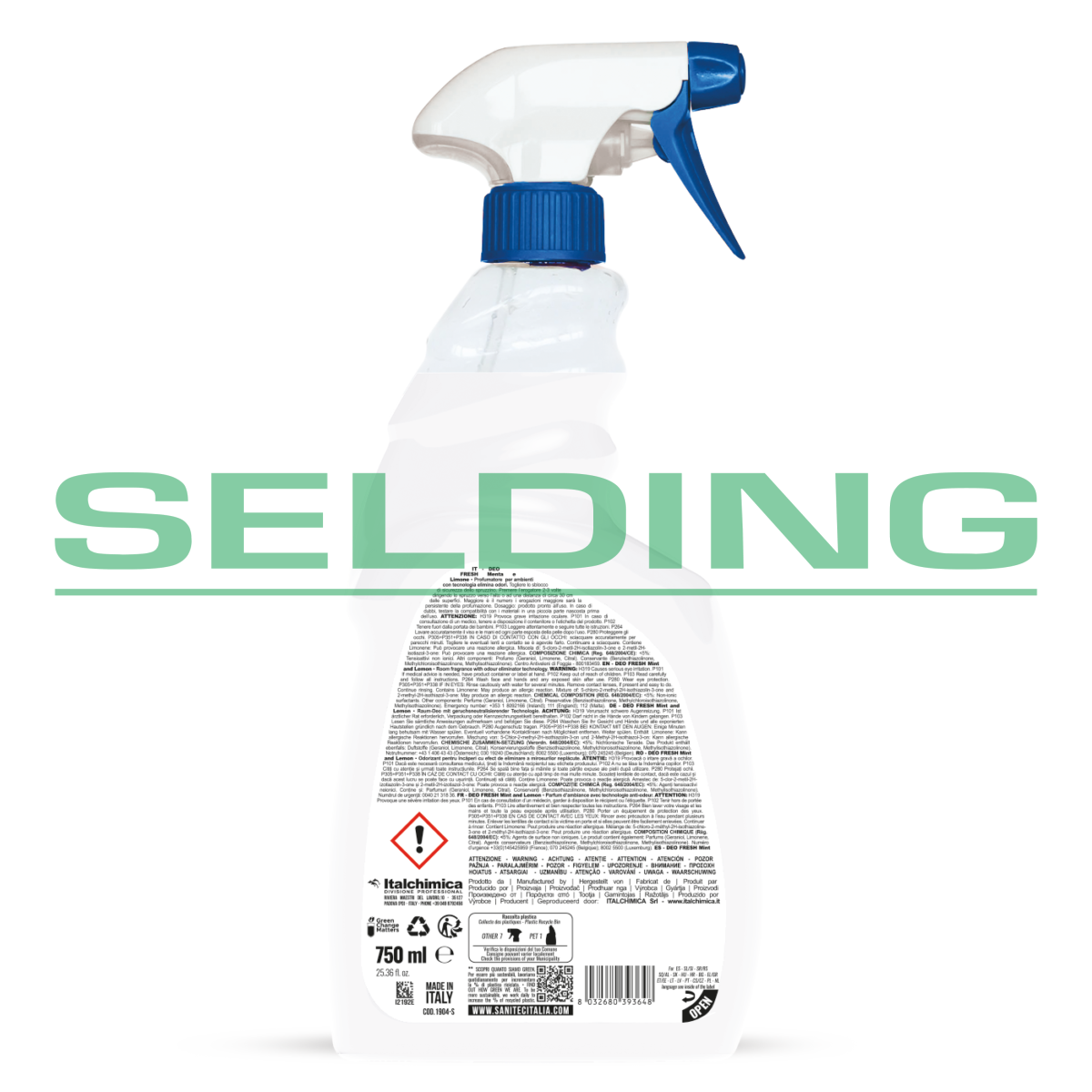 Iepakojums: 750ml, aromāts: piparmētru/ citronu. Gatavs lietošanai. Izsmidzināms gaisa atsvaidzinātājs neitralizē nepatīkamas smakas, atstājot patīkamu citrona un piparmētras aromātu. Lietošanai tualetes istabās, virtuvēs, vannas istabās, automašīnu salonos, apavu plauktos, ģērbtuvēs, mājdzīvnieku smaku novēršanai, tekstilizstrādājumiem, paklājiem. Lietošana: izsmidziniet līdzekli 2-3 reizes, virzienā uz augšu vai apmēram 30cm attālumā no virsmas, kuru ir jāatsvaidzina.