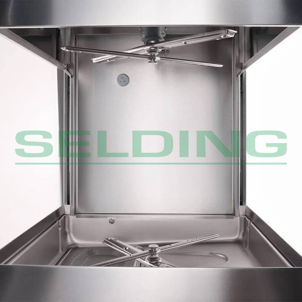Profesionāla trauku mazgājamā mašīna ar dezinfekcijas funkciju, elektroniskā vadība, trauku mazgājamā mašīna, paplāšu, stikla trauku, galda piederumu un šķīvju mazgāšanai – cikla laiks 120/180sek., boilera un kameras darba temperatūras indikatori, ūdens patēriņš 2,5l/ciklā, 2pāri mazgāšanas rokas, augšējās un apakšējās, komplektācijā 3 grozi: universālajiem šķīvjiem, traukiem un traukiem galda piederumiem. Ūdens padevei ir jābūt aprīkotai ar ūdens attīrīšanas filtru, lai pasargātu trauku mazgājamo mašīnu no kaļķakmens nogulsnēm. Trauku mašīnas komplektācijā iekļauts mazgāšanas un skalošanas dozators.
