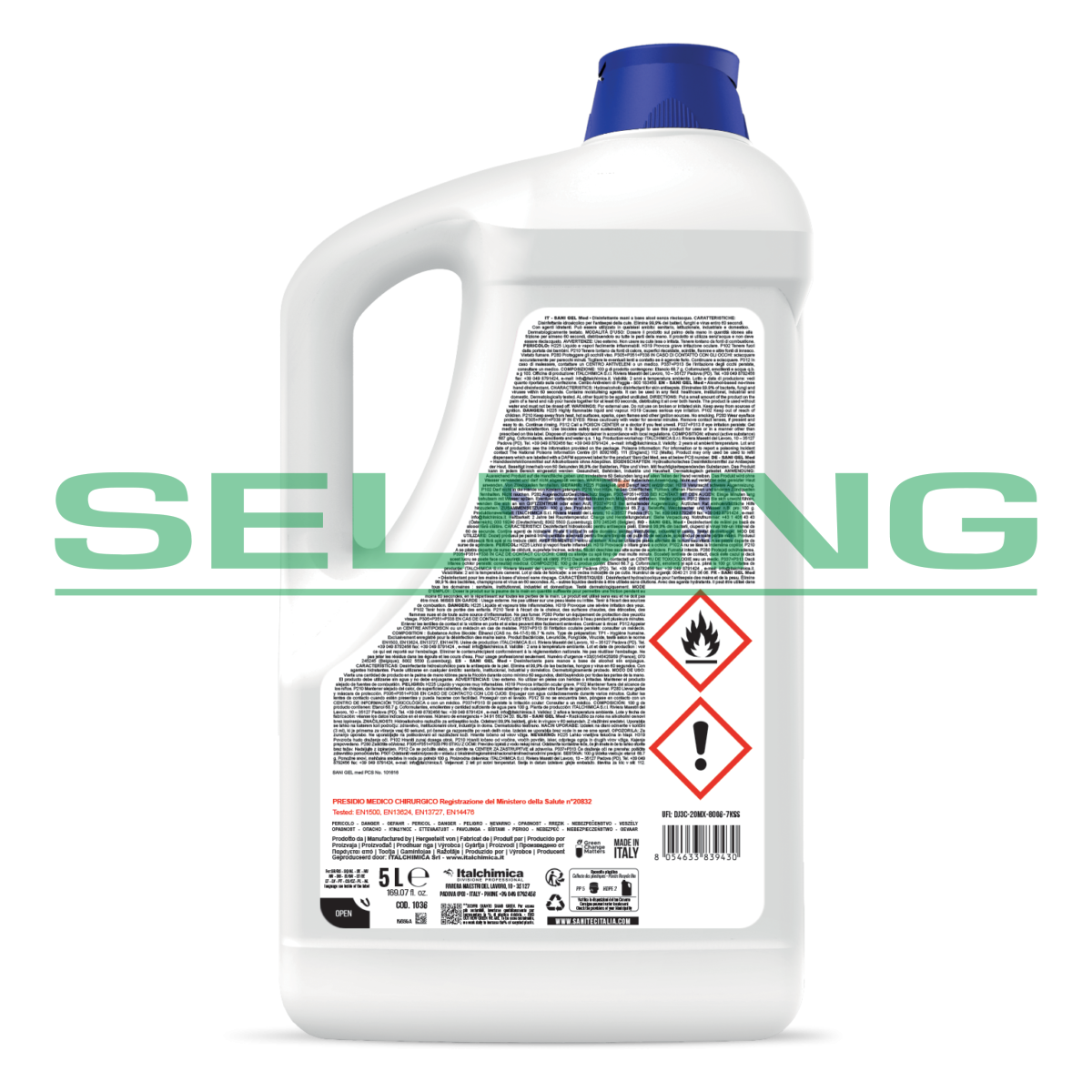 Iepakojums: 5L, pH 6,8. Roku ādai saudzējoša dezinfekcijas želeja ar mīkstinošām un mitrinošām īpašībām, satur pantenolu. Iznīcina 99.9 baktēriju, sēnīšu un vīrusu 60 sekunžu laikā. Aktīvā viela etanols 75%. BIOCĪDS LV12092022/6560. Lietošana: nelielu daudzumu gela berzējiet rokās, līdz tas pilnībā iesūksies. Nav jāskalo. Dermatoloģiski pārbaudīts. Atbilst H.A.C.C.P. (apstiprināts izmantošanai PĀRTIKAS jomā). Atbilst EN13727: 2015, EN1500: 2013, EN13624: 2013, EN14476: 2019.