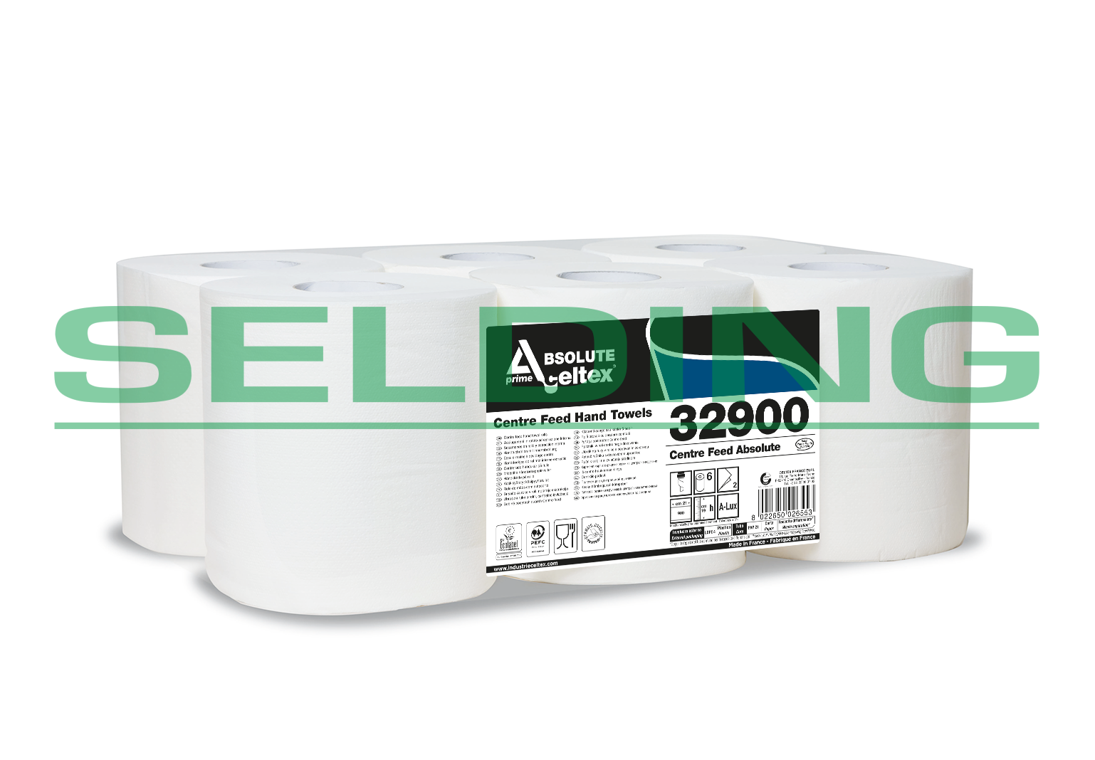 Roku dvieļi Celtex Centre Feed ABSOLUTE 189, balti, 2-kārt., 6gab, Ø20