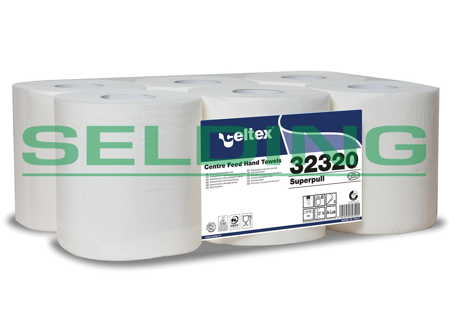 Roku dvieļi Celtex SUPERPULL Maxi 160, balti, 2-kārt., 6gab, Ø20