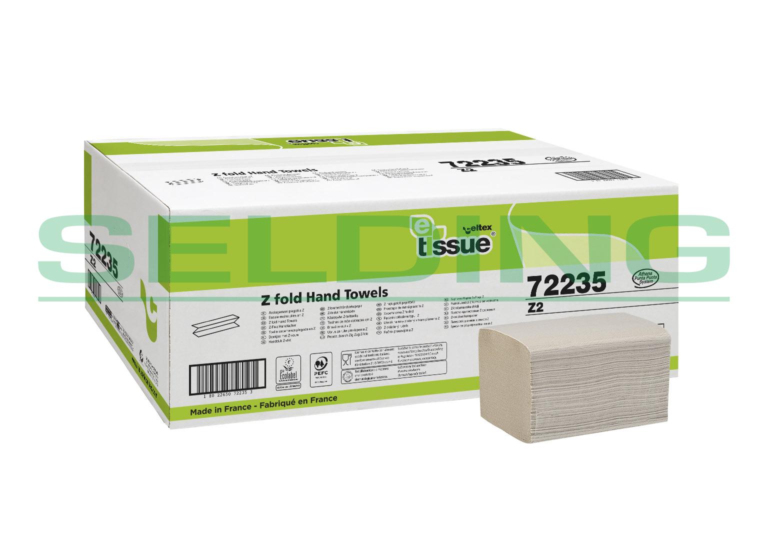 Roku salvetes CELTEX E-Tissue Z 20.5x24cm, gaiši brūnas, 2-kārt., 25x150gab (šaurās 8cm)