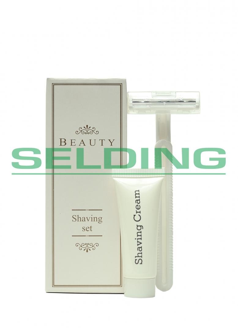 Iepakojumā: 50gab. Skūšanās komplekts papīra kastītē: skūšanās krēms 10g + skuveklis.