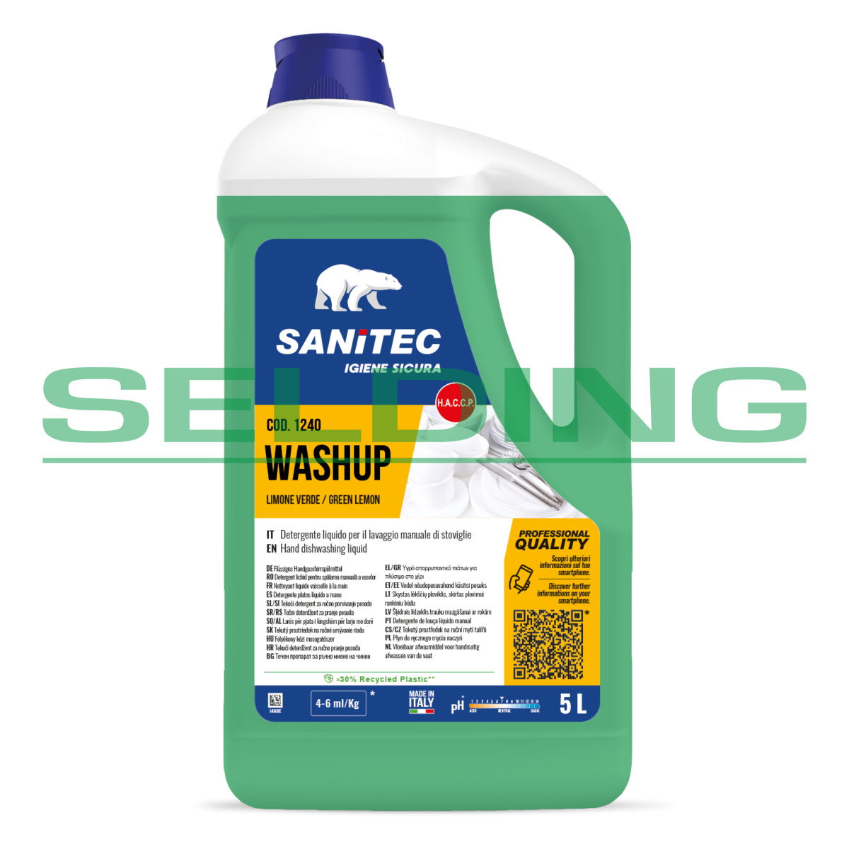 Trauku mazgāšanas līdzeklis Sanitec WASHUP Green Lemon, 5L (2)
