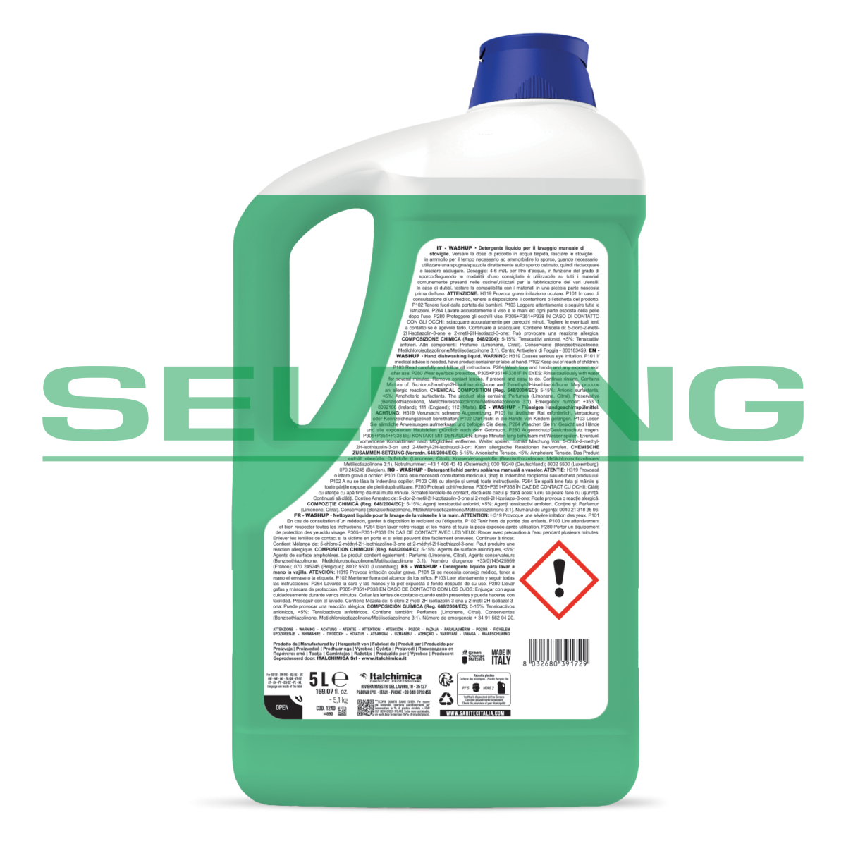 Iepakojums: 5L. Trauku mazgāšanai ar rokām ar zaļā citrona smaržu. pH neitrāla, rokas saudzējoša formula, rūpīgi attauko, neitralizējot smakas.