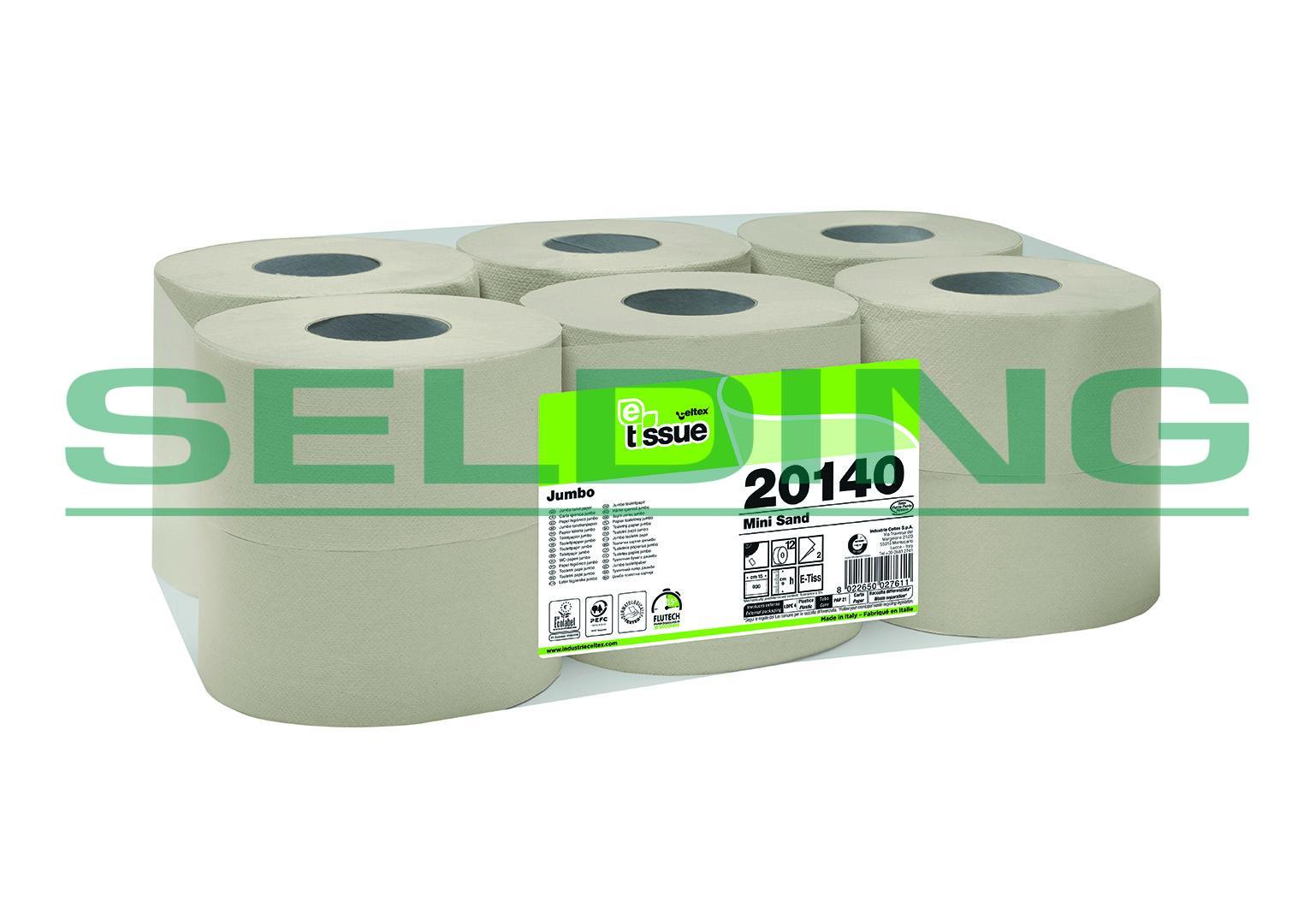 Tualetes papīrs CELTEX E-TISSUE Mini 140, gaiši brūns, 2-kārt., 12gab, Ø19.5