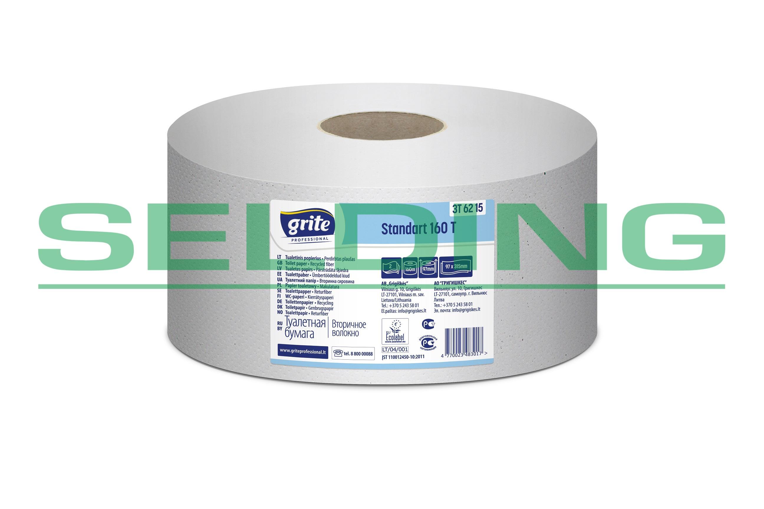 Tualetes papīrs GRITE Standart 160, balināts, 2-kārt., 12gab, Ø18