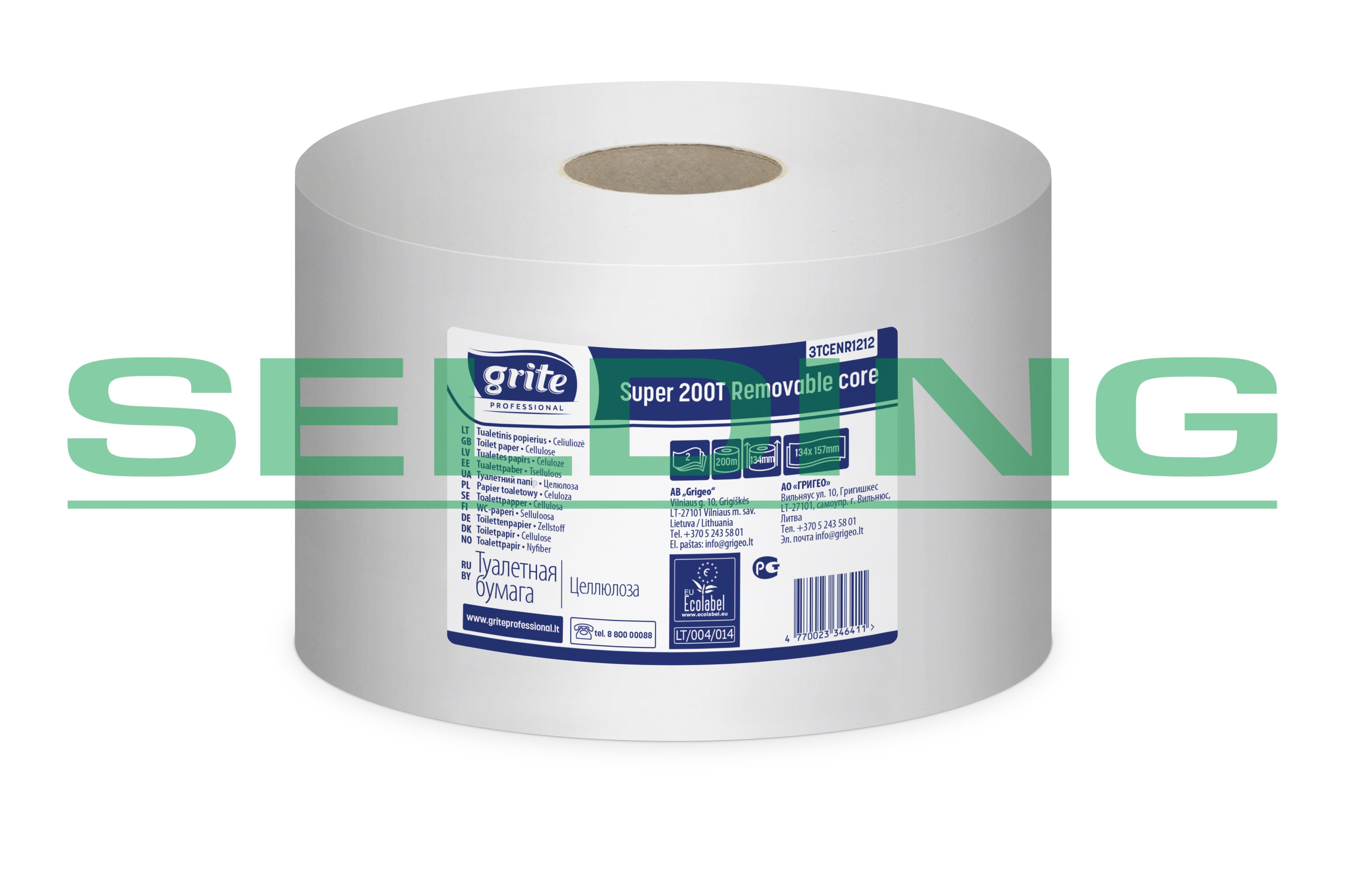 Tualetes papīrs GRITE Super 200T Centerfeed, balts, 2-kārt., 12gab, Ø19.7