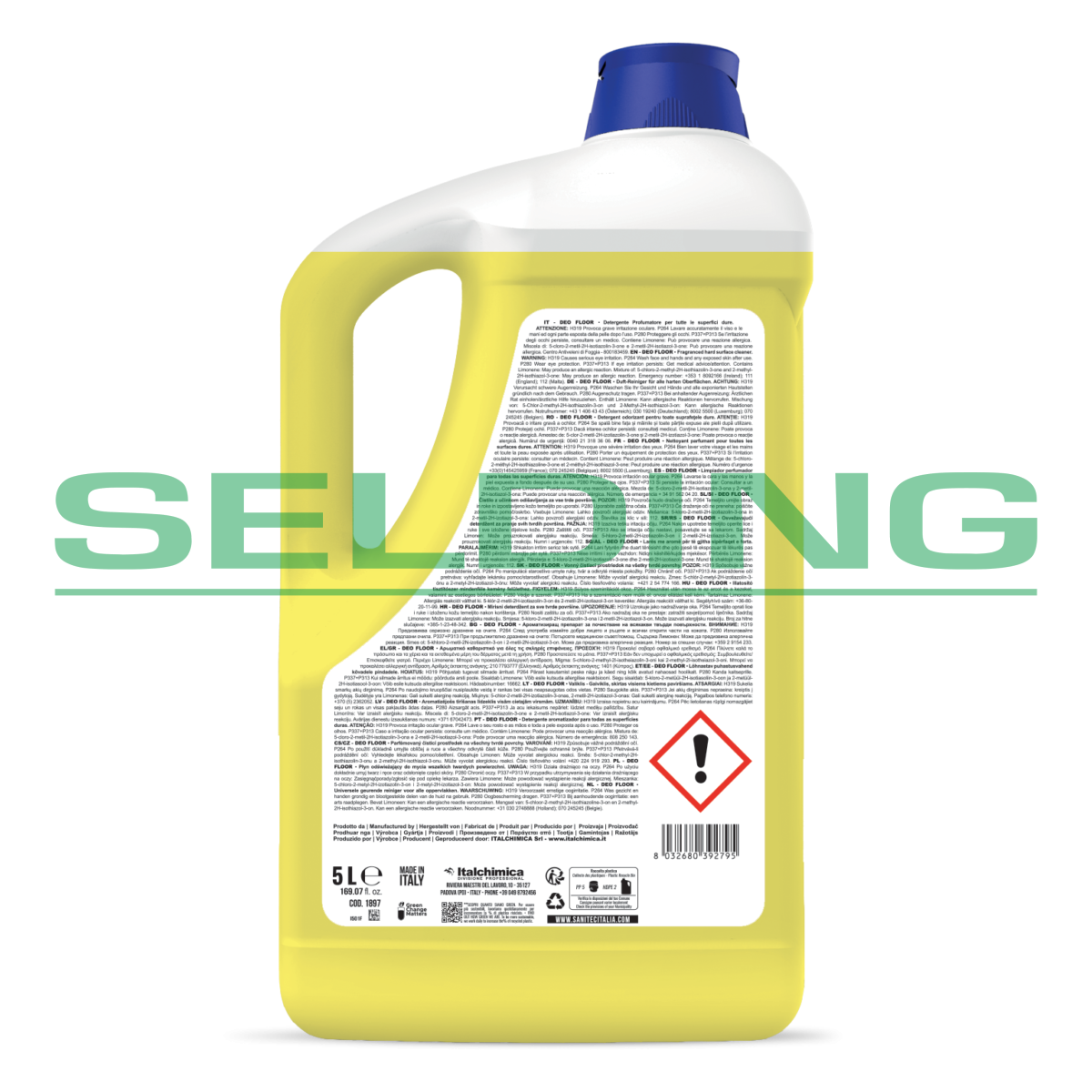 Iepakojums: 5L, pH 5,5. Aromāts: citronu. Mazgāšanas līdzeklis ūdens izturīgu virsmu tīrīšanai ar smaku novēršanas efektu, nodrošinot apstrādājamās virsmu higiēnu. Paredzēts grīdu, sienu, sanitāro telpu un mezglu tīrīšanai. Neitralizē nepatīkamās smakas un uzlabo gaisu, īpaši tualetes istabās, ģērbtuvēs, viesnīcās un ofisa telpās. Nav nepieciešama skalošana. Lietošana: kā telpas atsvaidzinātājs līdzeklis ir gatavs lietošanai; tīrīšanai ar rokām/ar mazgājamo mašīnu: 2 vāciņi/ 5L ūdens.