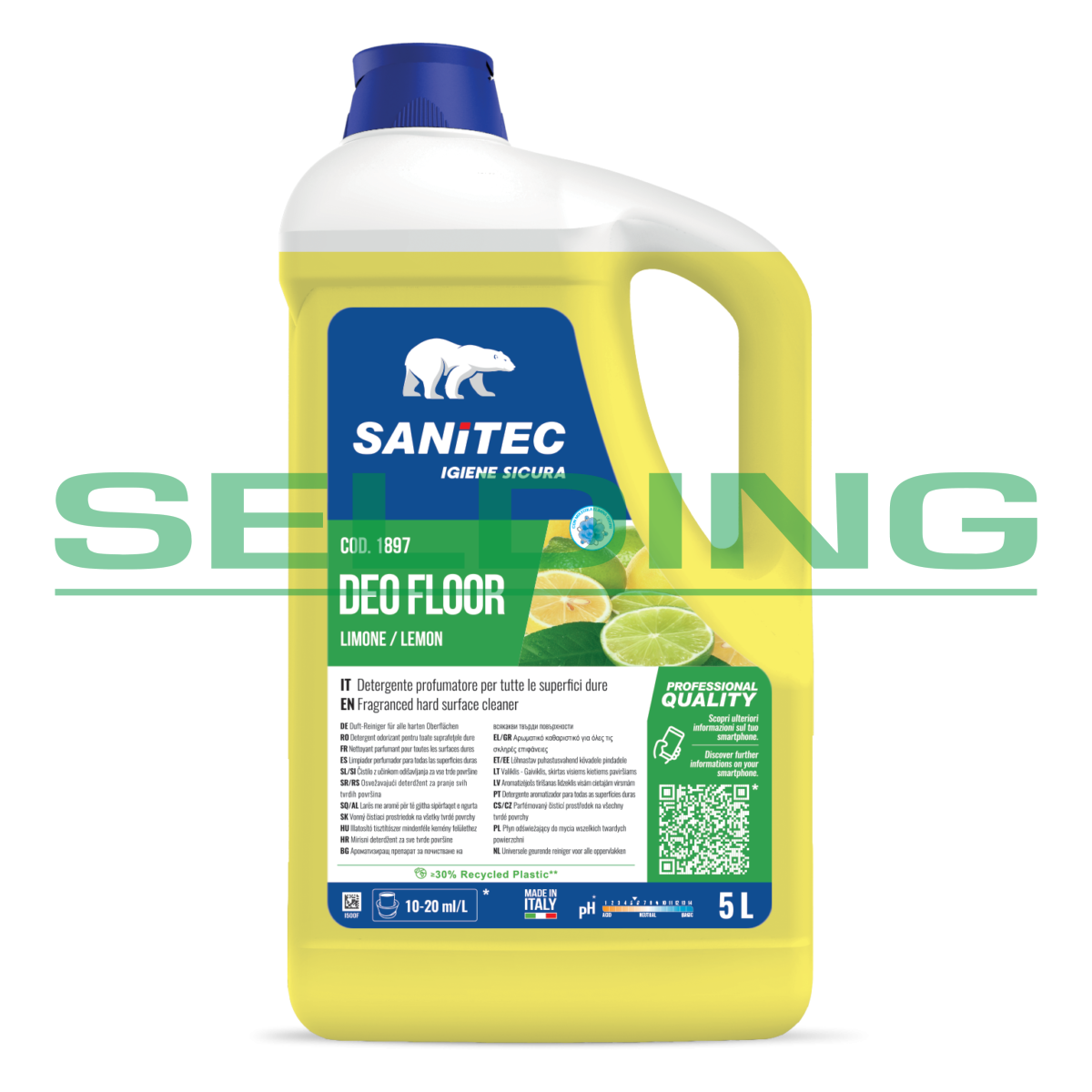 Iepakojums: 5L, pH 5,5. Aromāts: citronu. Mazgāšanas līdzeklis ūdens izturīgu virsmu tīrīšanai ar smaku novēršanas efektu, nodrošinot apstrādājamās virsmu higiēnu. Paredzēts grīdu, sienu, sanitāro telpu un mezglu tīrīšanai. Neitralizē nepatīkamās smakas un uzlabo gaisu, īpaši tualetes istabās, ģērbtuvēs, viesnīcās un ofisa telpās. Nav nepieciešama skalošana. Lietošana: kā telpas atsvaidzinātājs līdzeklis ir gatavs lietošanai; tīrīšanai ar rokām/ar mazgājamo mašīnu: 2 vāciņi/ 5L ūdens.