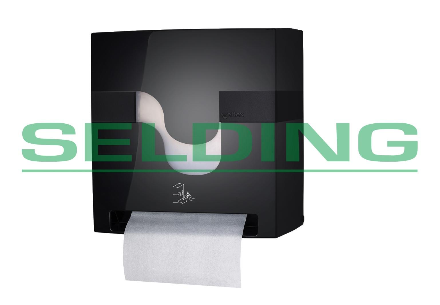 Подача бумаги включается на сенсоре. Цвет: чёрный, размеры 34.7×32.5×21.4см, материал: пластик. Предназначен для полотенца C40439, C40300, C4040S, C40285. Батареи LR20/D 4шт (в комплект не входит). Регулируемое время реакции и длина листа.