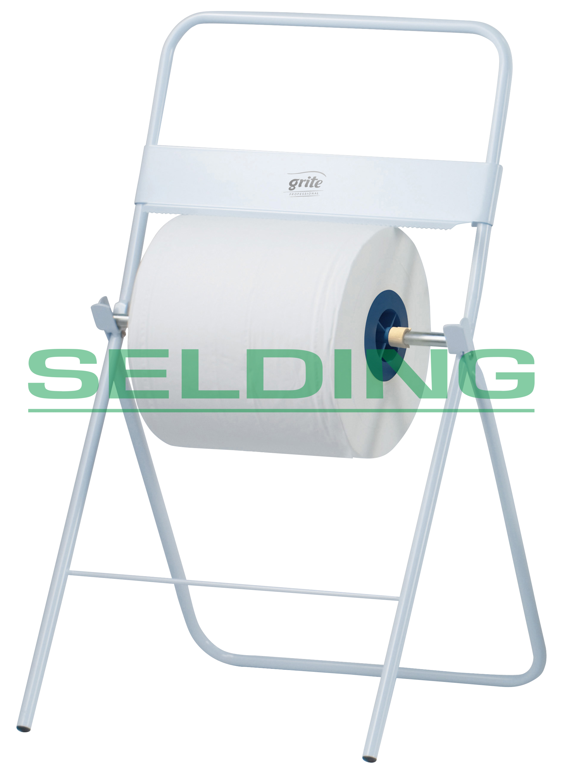 На пол. Максимальный размер рулона Ø42×36см. Размеры держателя 84x44x44см.