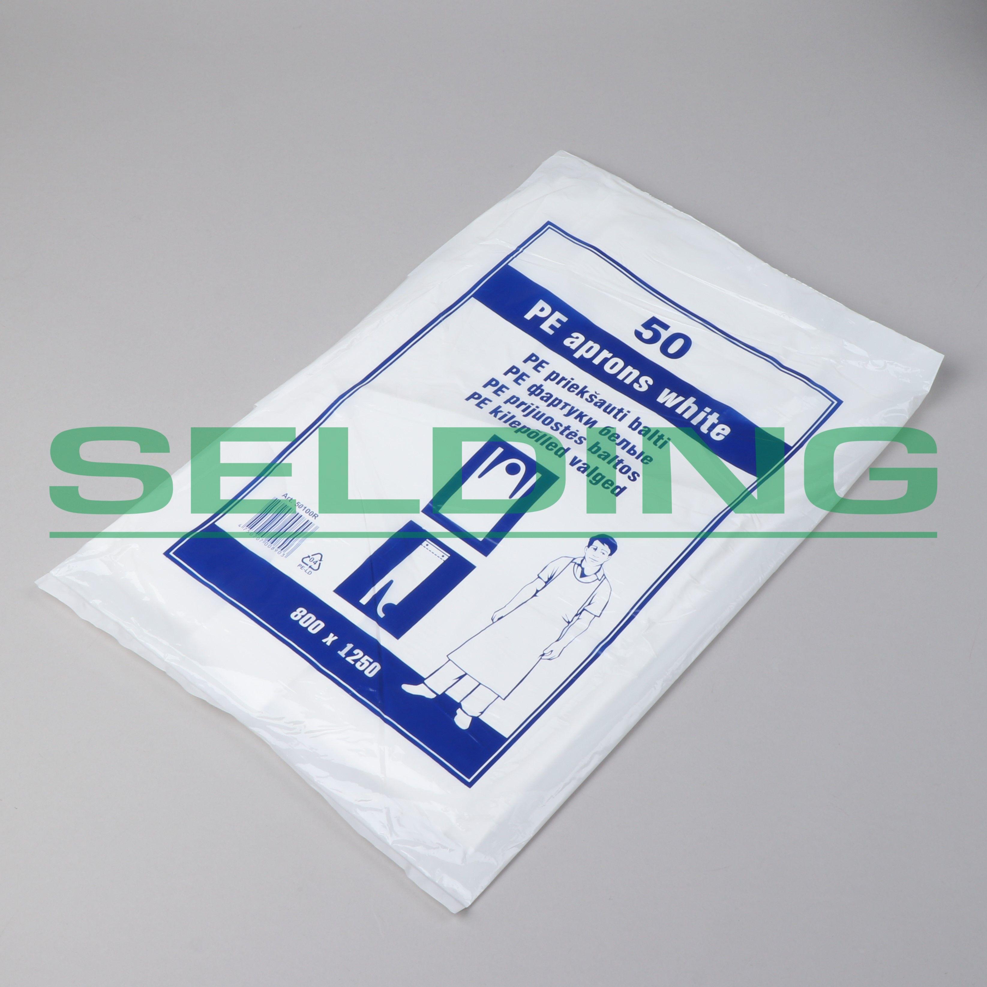 Упаковка: 50шт. Размер: 80х125см. Одноразовые пластиковые фартуки для защиты одежды. Подходит для работы в заведениях общественного питания, больницах и пищевой промышленности.