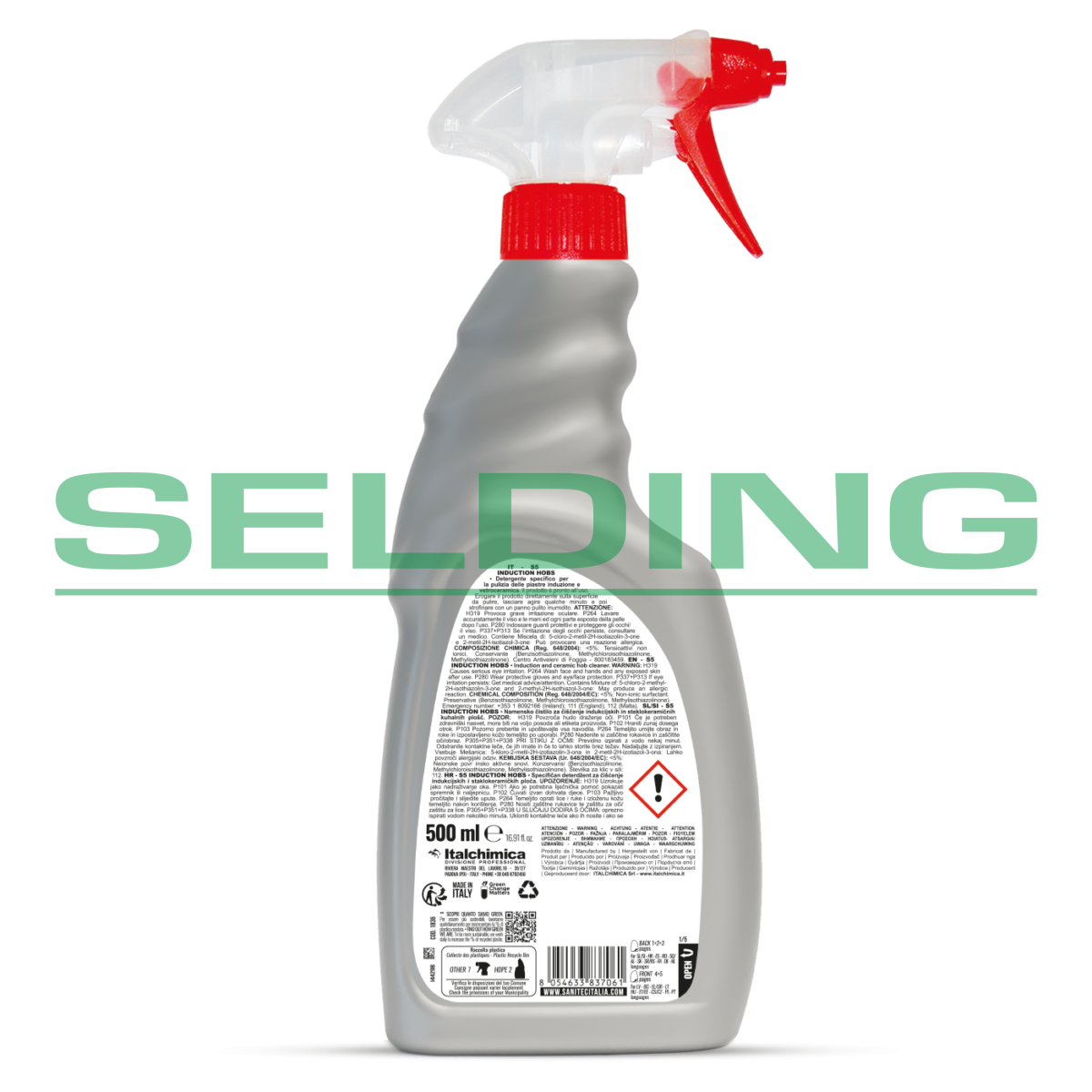 Объем: 500мл, рН 10,5. Готов к использованию. Чистящее средство для ежедневной очистки керамических и индукционных поверхностей. Чистит аккуратно и аккуратно, не царапая и не вытирая поверхность. Активные ингредиенты в моющем средстве облегчают удаление жирной и сгоревшей грязи. Применение: Распылить на обрабатываемых поверхностях. Подождите несколько минут для сгоревшей грязи. Протрите влажной тканью или губкой и промойте. Соответствует H.A.C.C.P. (одобрен для использования в пищевой промышленности).