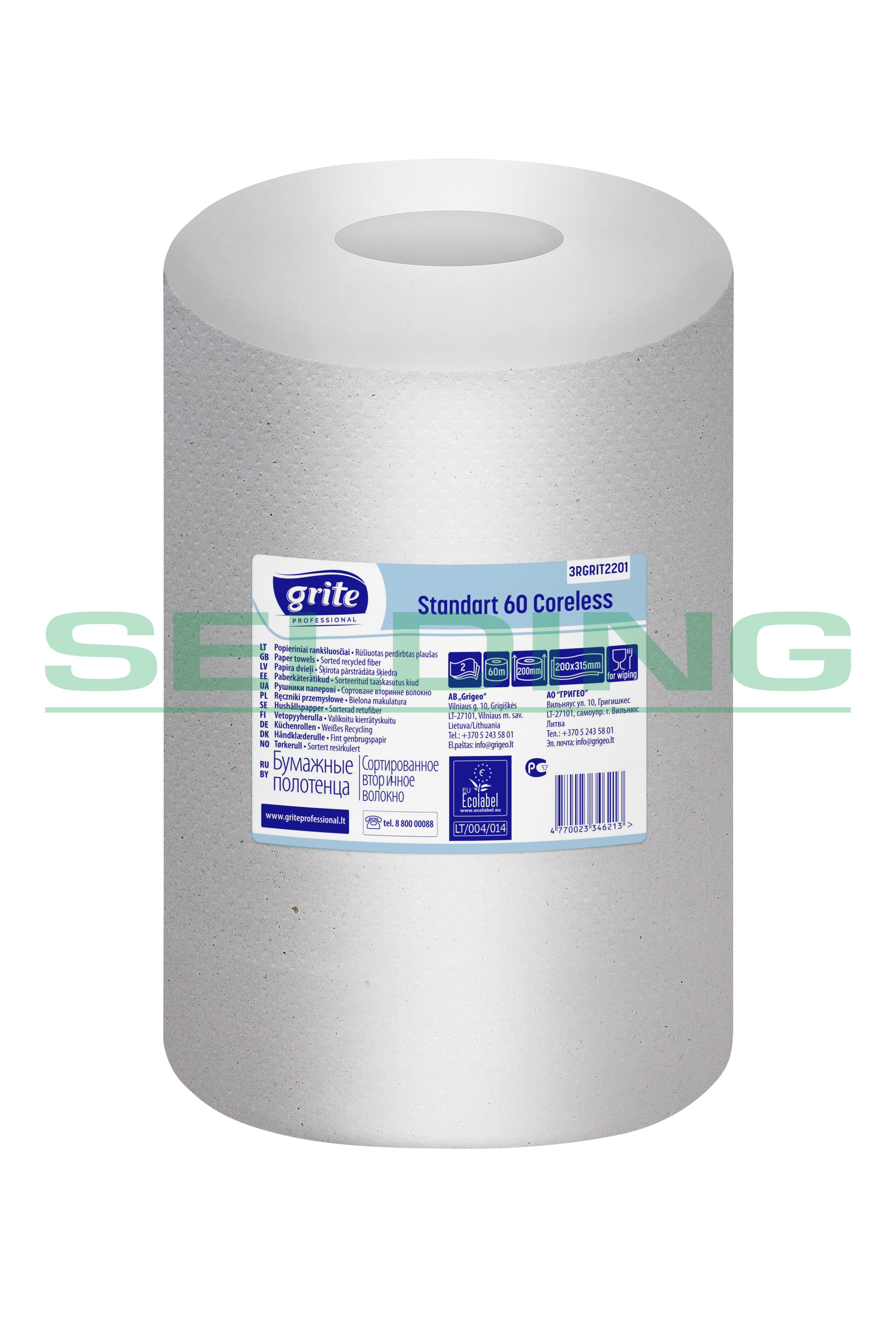 Полотенца для рук Grite Standart 60 Coreless, отбеленные, 2-слойные, 12шт, Ø13,5